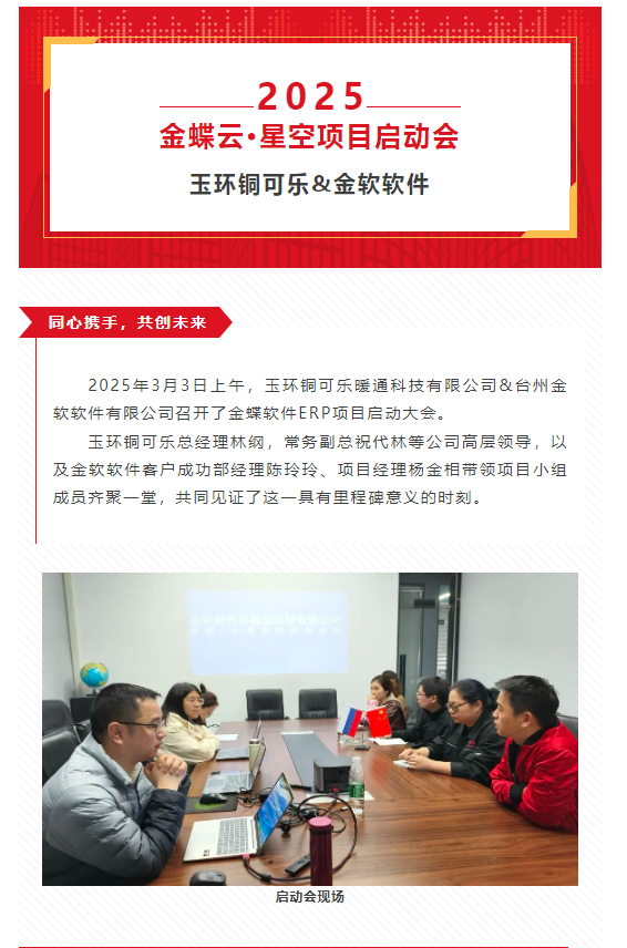 【喜報】玉環(huán)銅可樂&金軟軟件金蝶云星空ERP項目啟航