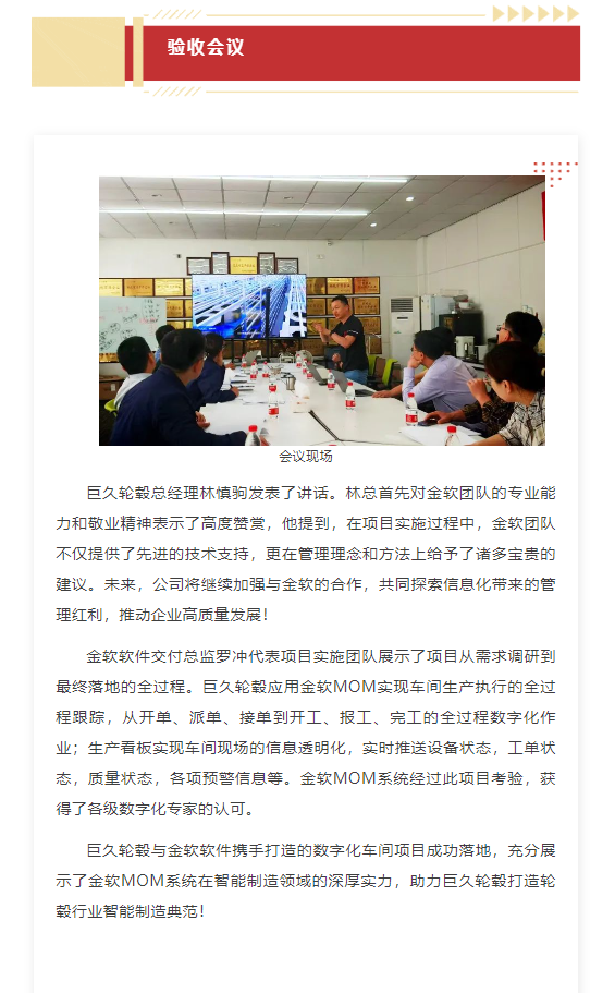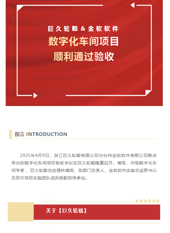 喜報(bào) | 巨久輪轂&金軟軟件"數(shù)字化車間"項(xiàng)目順利通過驗(yàn)收!