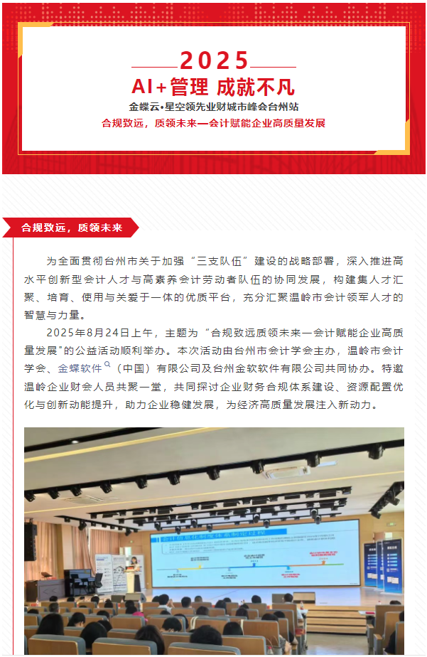 金軟 |AI+管理 成就不凡 金蝶云·星空領(lǐng)先業(yè)財(cái)城市峰會(huì)臺(tái)州站